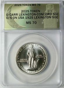 Official Concord250 Commemorative Coin, celebrating the semiquincenntennial of the shot heard around the world! Choose from polished nickel proof or antique silver finish. $20. Available at Middlesex Savings Bank.