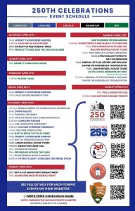 7:30-8:45PM: CONCORD250 “PATRIOTS LIGHT, including DRONE SHOW at 8:15PM at Concord Carlisle High School