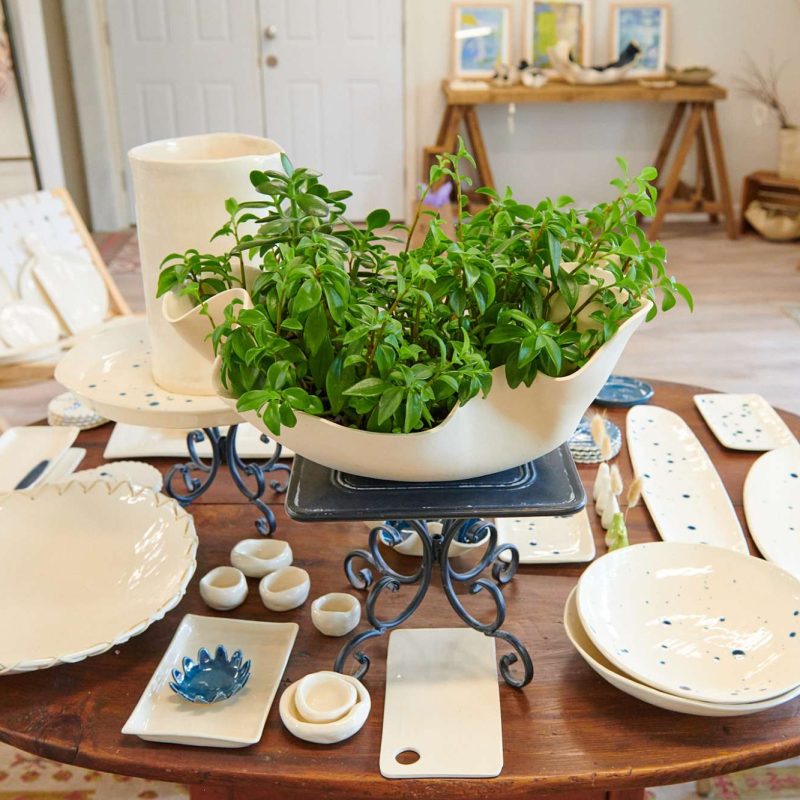 The simple, organic designs of ceramicist Michal Adar-Orgad fill this bright and airy shop. Her contemporary style is dynamic and sophisticated. The handmade pieces feel natural and organic to the touch.