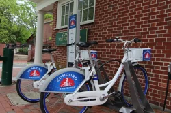 The Towns of Acton, Concord, Lincoln, and Maynard received a grant from the Massachusetts Department of Transportation’s Shared Streets and Spaces program to fund a regional bike share from spring 2025 through fall 2027! The bike share features seven stations at the following locations along the Assabet River Rail Trail and Bruce Freeman Rail Trail: